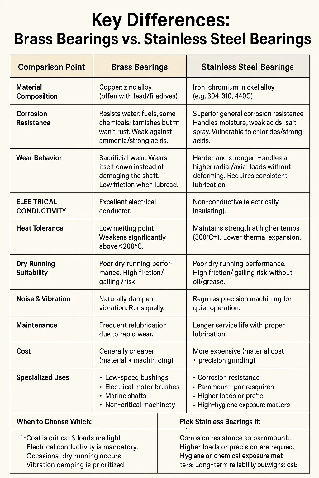 Styrke og hårdhed | Blødt materiale, lav belastningskapacitet. Tilbøjelig til deformation under tunge belastninger. | Hårdere og stærkere. Håndterer højere radiale/aksiale belastninger uden deformering. |
